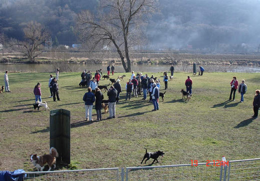 To je zase lidí a štěňátek! Za každého počasí! to jsou šikulkové (páníčci i pejskové)!