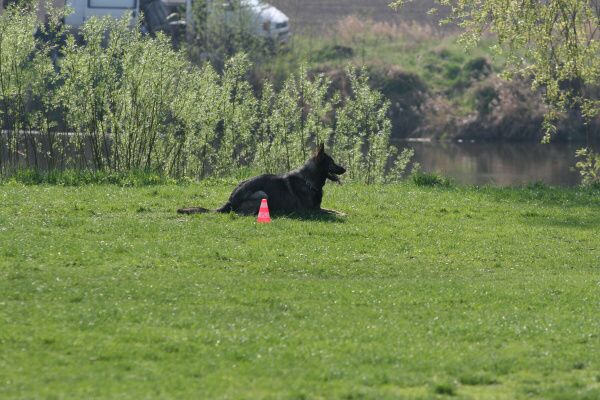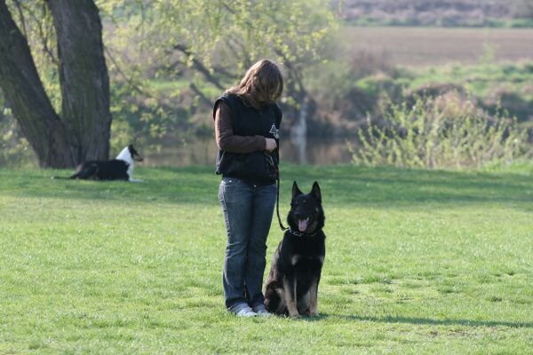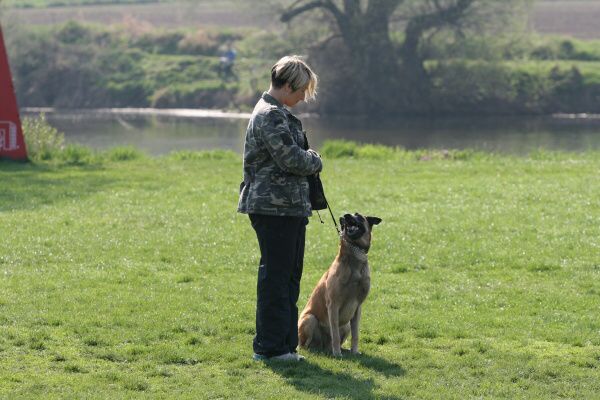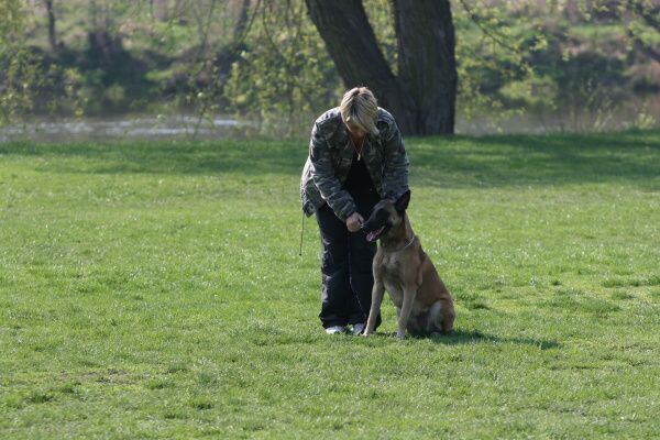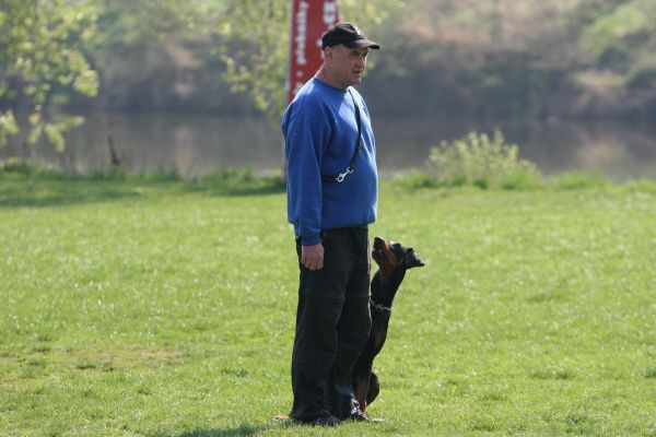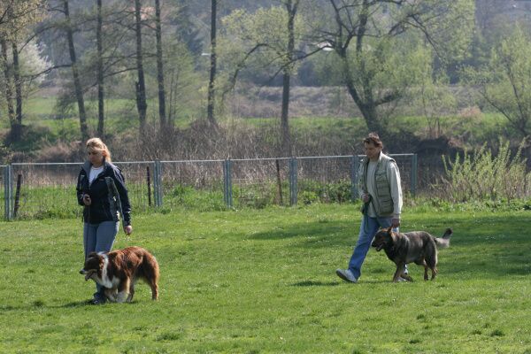 Jeden psovod za druhým statečně procházeli poslušností, čas utíkal, sluníčko hřálo čím dál víc a my jsme se na něm spokojeně vyhřívali na hrázi. Okolo nás občas profrčeli cyklisti na svých rychlých kolech, někteří byli slušnější, někteří se chovali tak, jako kdyby jim patřila celá cesta a nikdo jiný se tam nesměl vyskytovat. Sem tam padlo i jadrné slovo. To víte, na hrázi stála skupina lidí se psy a hodně diváků, kteří se zaujetím pozorovali naše výkony.